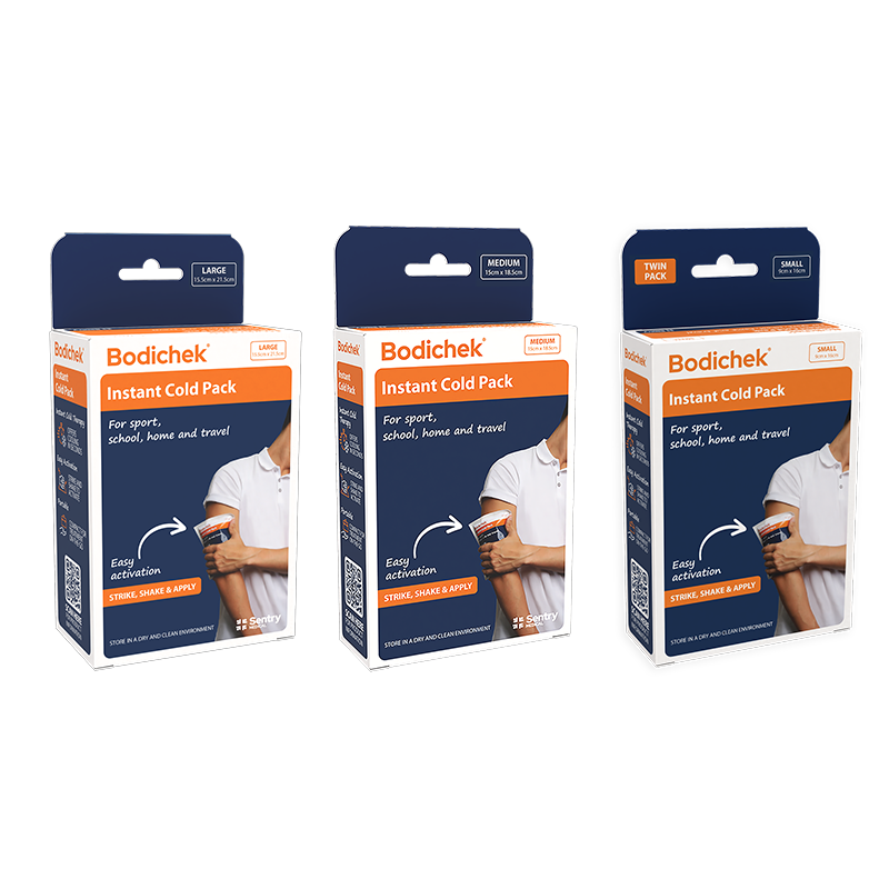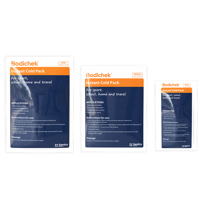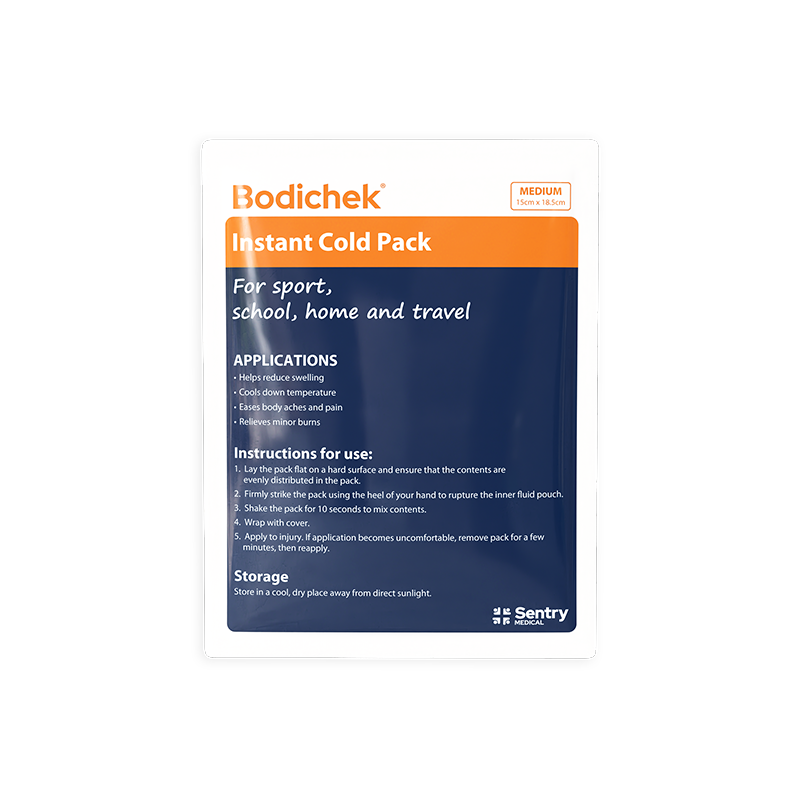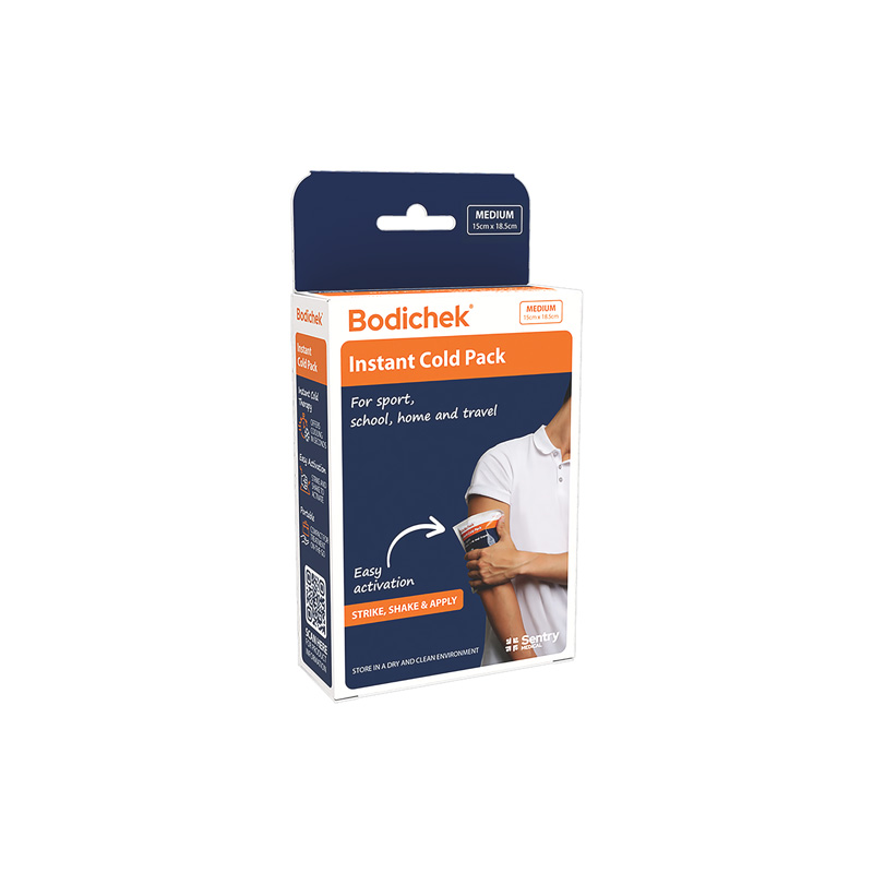 Bodichek Instant Ice/Cold Packs are single-use, non-refrigerated packs designed to provide immediate cooling relief from pain and reduce swelling from minor injuries. The ice packs are compact and versatile—ideal for treatment on-the-go with an easy strike and shake activation.