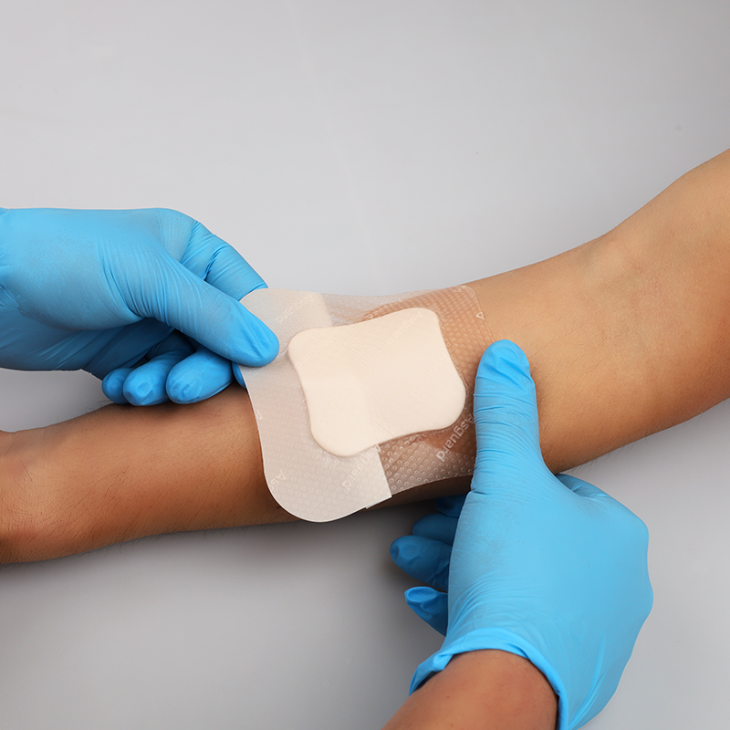 Silicone foam lite dressing with border (Type II) is indicated for wound management of superficial exudative wounds (such as minor abrasions, minor cuts, minor lacerations, minor scrapes, minor scalds, minor burns, etc.) or for the prevention of pressure injuries to intact skin.